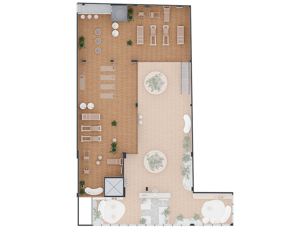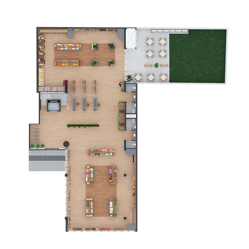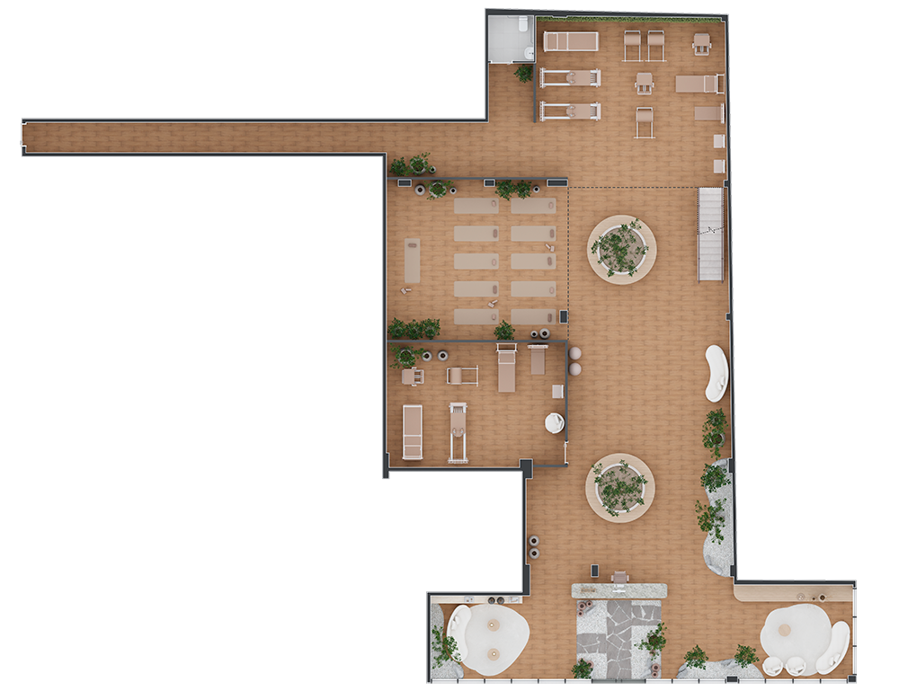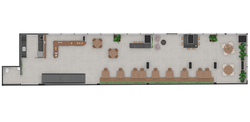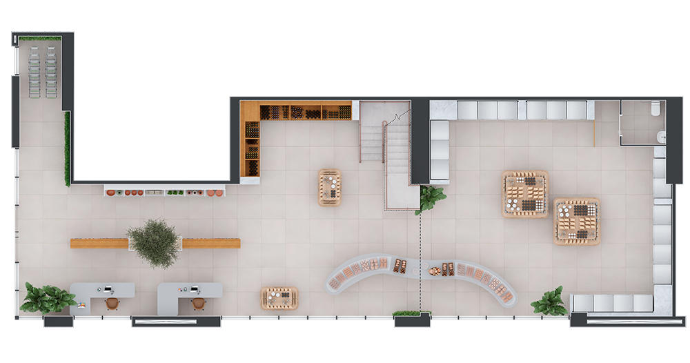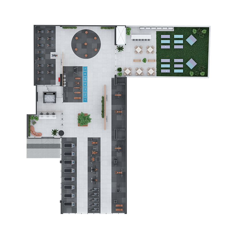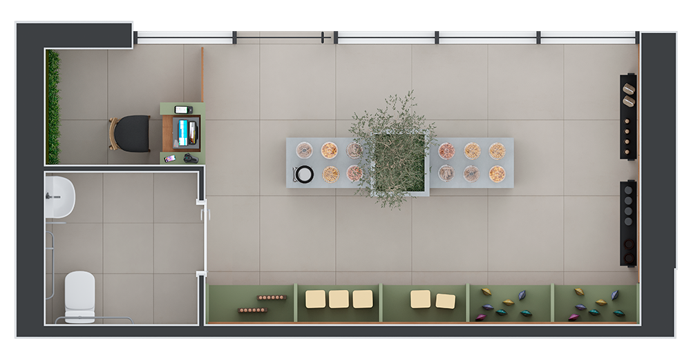 Plantas ilustrativas e perspectivas com sugestão de decoração. Os móveis e os equipamentos têm dimensões comerciais e não fazem parte do contrato.